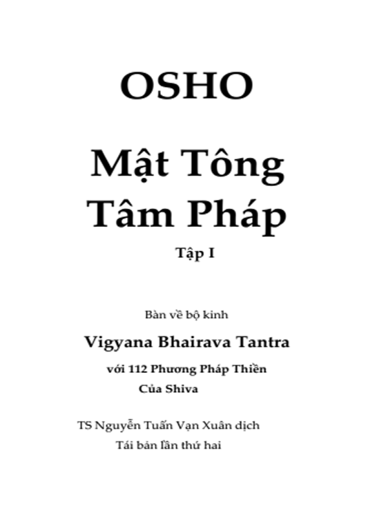 Nguyên tác: The Book of The Secrets (80 chương, tổng cộng hơn 1400 trang). Bàn về bộ kinh Vigyana Bhairava Tantra với 112 phương pháp thiền của Shiva.