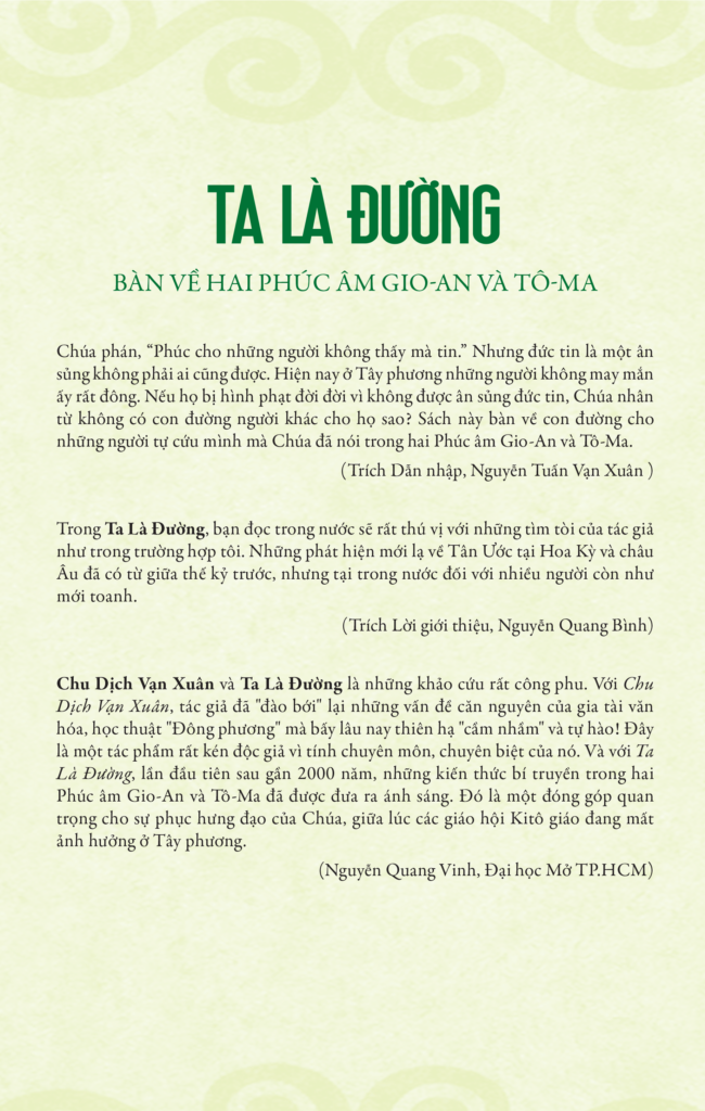 Trong hơn 16 thế kỷ đã qua, Kitô giáo chính thống đã hoàn toàn thành công trong việc đàn áp Kitô giáo huyền học. Nhưng thần học Kitô giáo khó có thể cứu vãn sự suy tàn hiện nay của Kitô giáo ở Tây phương. Thế thì có ba con đường mở ra cho những người đó. Con đường thứ nhất dành cho những người may mắn được ân sủng đức tin; họ sẽ được phần thưởng thiên đường sau khi chết. Con đường thứ hai cho những người không thể móc con mắt lý trí, trong đó một số nhỏ sẽ theo các tôn giáo khác vì các tôn giáo khác không thích hợp lối sống hiện đại ở Âu, Mỹ. Nhưng phần đông sẽ không cần tôn giáo. Họ sẽ sống như không có ngày mai và không quan tâm đến thiên đường, địa ngục. Tuy nhiên, cuộc sống vật chất ngày nào đó sẽ không thỏa mãn họ được, và họ sẽ tìm đến Huyền học Kitô giáo với những giá trị cao hơn, và họ sẽ cần những kiến thức bí truyền để đi vào tâm linh nhưng không đòi hỏi đức tin. Đó là con đường thứ ba mà sách này muốn đóng góp một phần nhỏ với hy vọng có thể làm sống lại lời của Chúa đã bị thất lạc từ hơn 2000 năm qua.